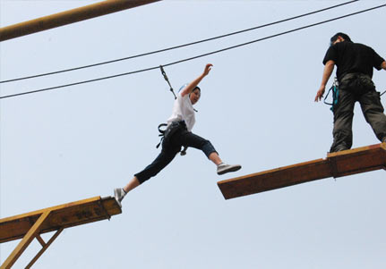 西雙版納企業(yè)員工會(huì)議會(huì)展戶外拓展訓(xùn)練公司團(tuán)建之拓展培訓(xùn)項(xiàng)目:《高空斷橋》
